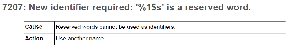 Caused by: java.sql.SQLException: JDBC-7207:New identifier required: 'USER' is a reserved word.