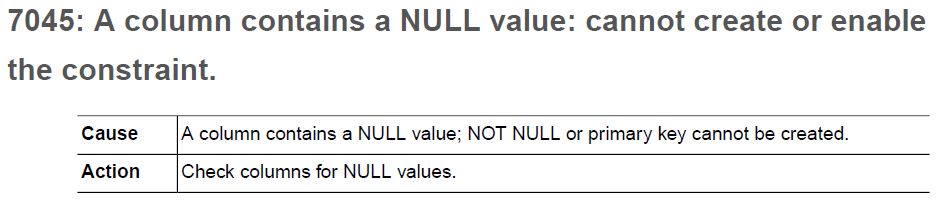 Caused by: java.sql.SQLException: JDBC-7045:A column contains a NULL value: cannot create or enable the constraint.