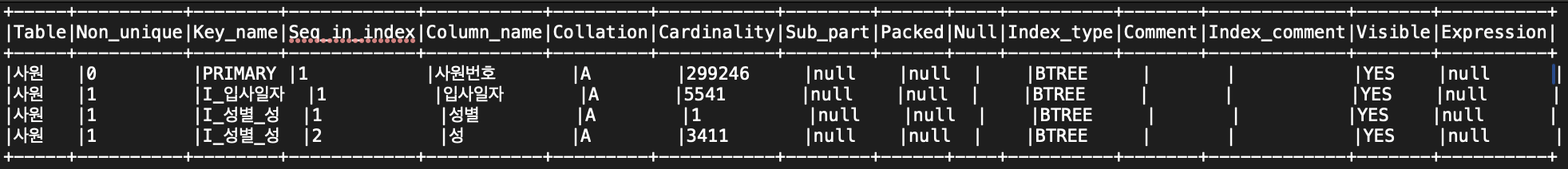- I_성별_성 인덱스 = 성별 열 + 성 열