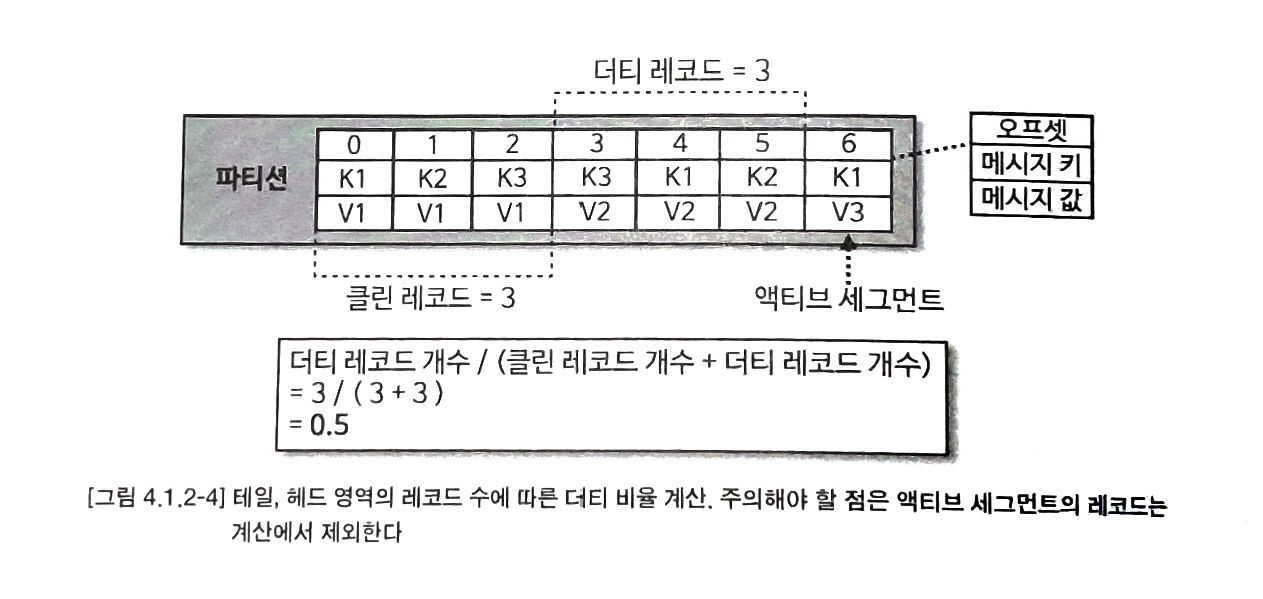 더티 비율(dirty ratio)는 더티 영역의 메시지 개수를 압축 대상 세그먼트에 남아있는