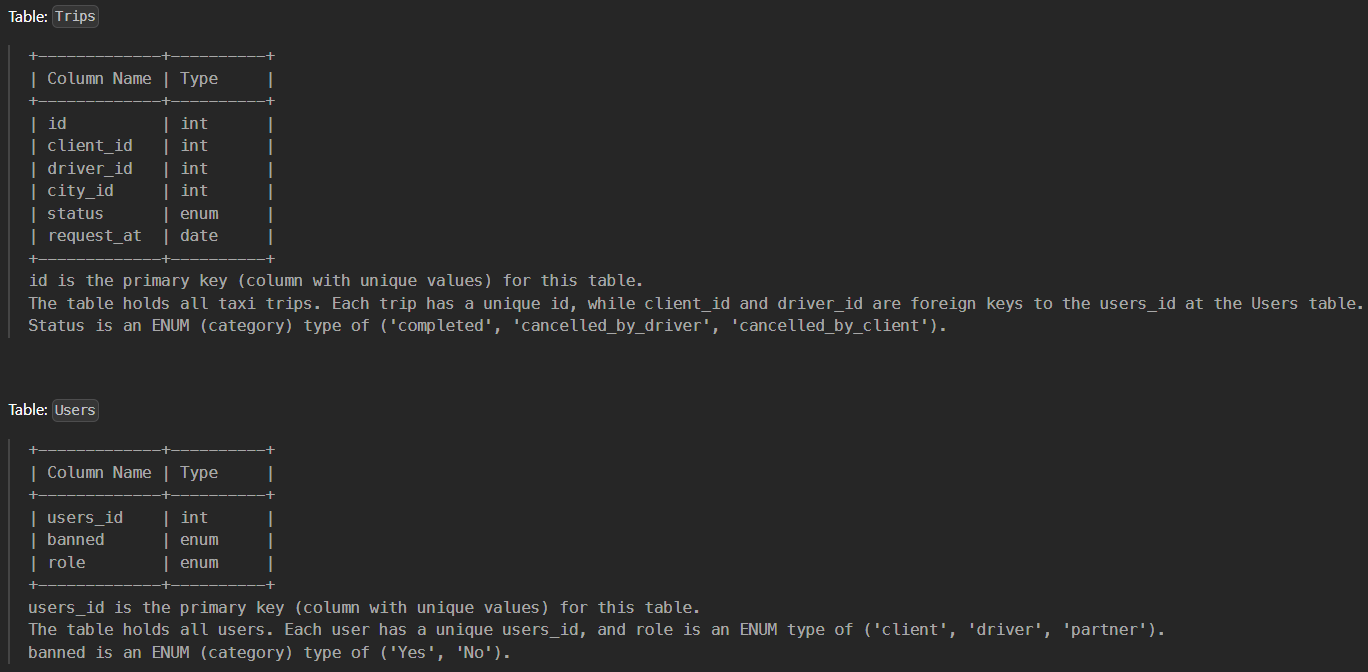 여기서 금지되지 않은 사용자는 Users 테이블에서 banned 컬럼 값이 'No'에 해당하는 클라이언트, 드라이버들을 말한다.