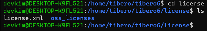 $ sudo mv /home/devkim/Downloads/license.xml /home/tibero/tibero6/license/