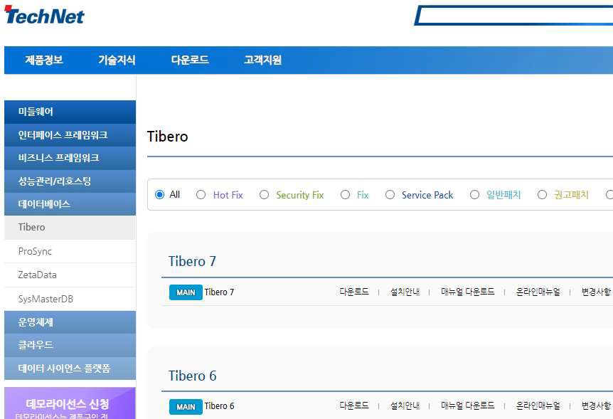 - 다운로드 – 데이터베이스 – Tibero – Tibero6 다운로드