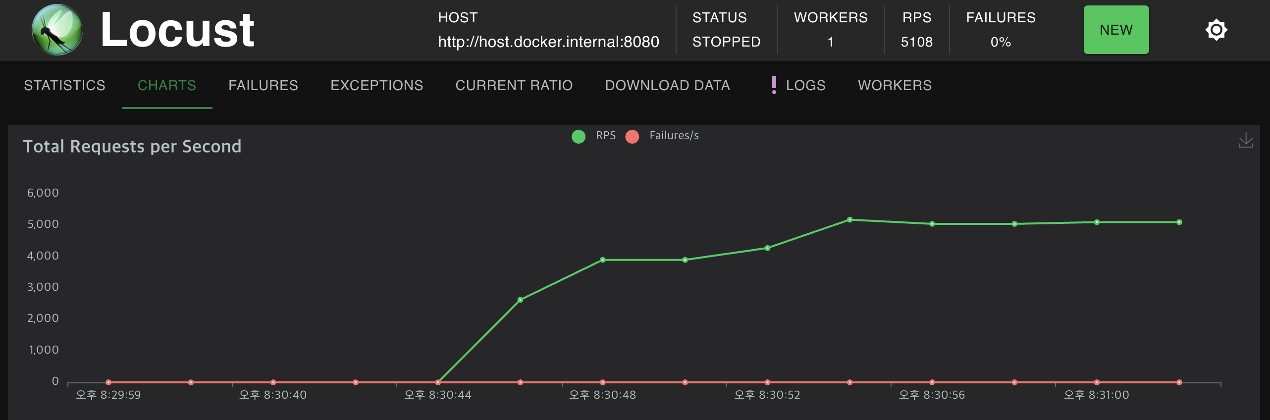 위에서 local 환경으로 테스트를 진행했던 RPS보다 2배 조금 더 높게 나오는 것을 확인할 수 있습니다.