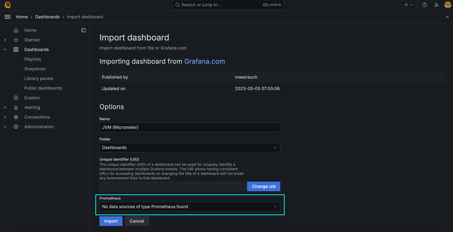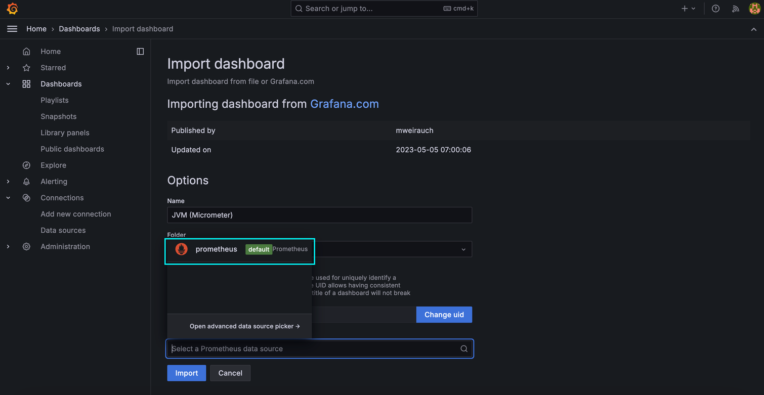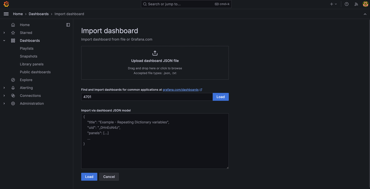 이제 다시 import dashboard 부분으로 돌아가서 id를 입력하고
