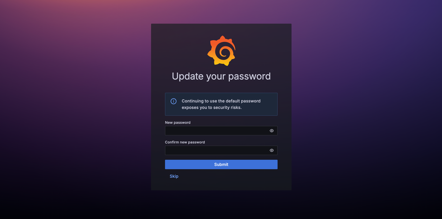 이제 수집한 지표들을 시각화하기 위해 3000 포트로 접근하여 그라파나를 실행합니다.