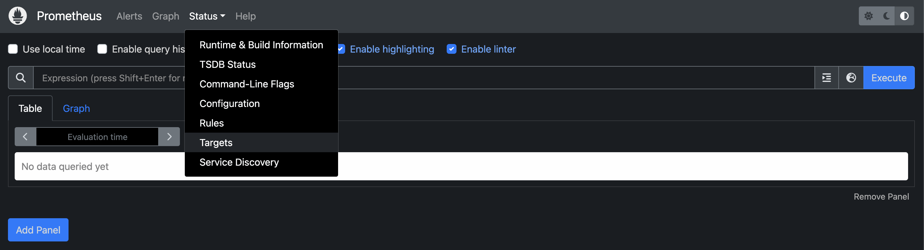 상단의 Status > Targets를 눌러주면 서버 상태 확인이 가능합니다.