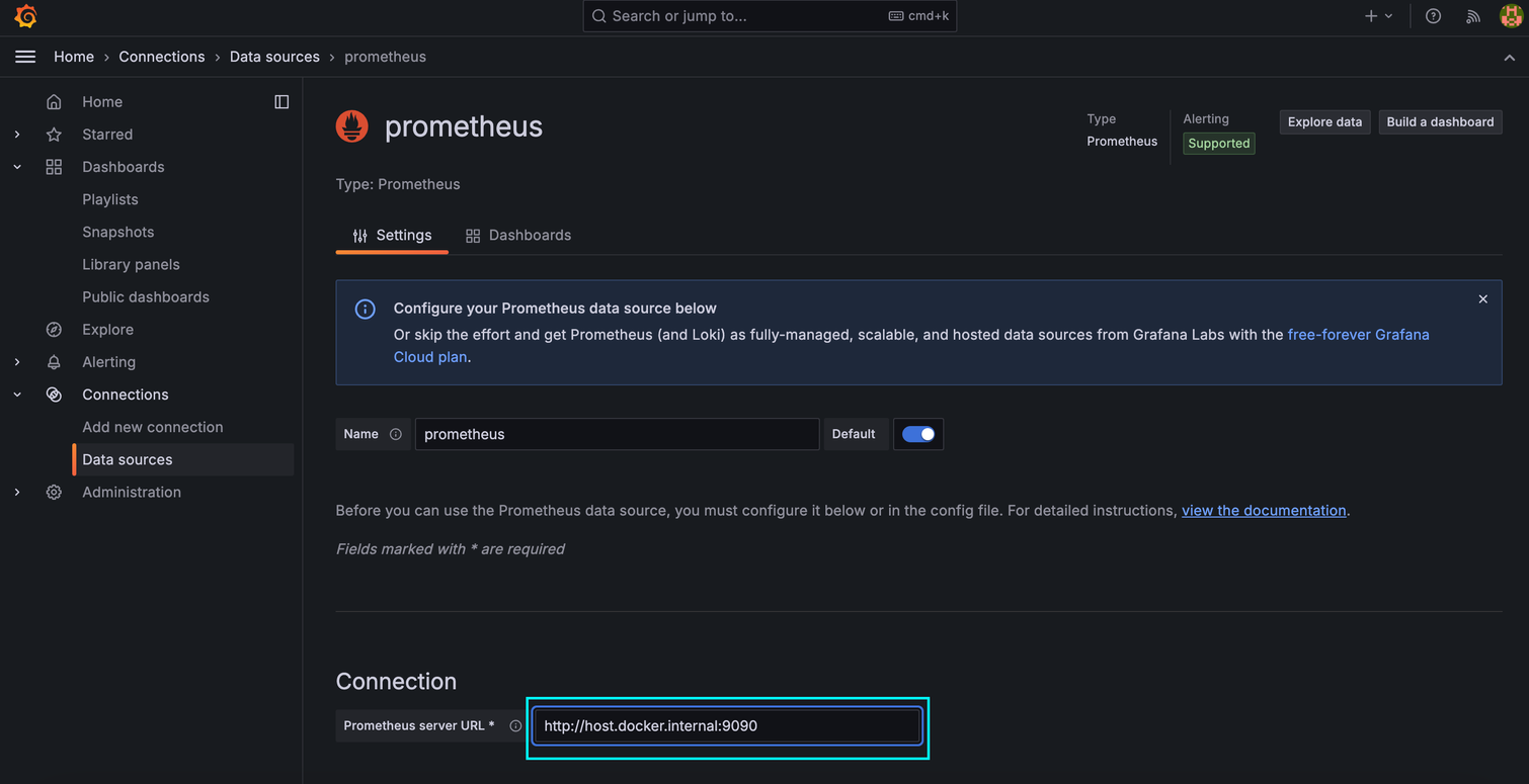 - 저의 경우 8080, 8081 포트로 Docker 내부의 호스트와 포트로 스프링 부트 애플리케이션의 프로메테우스 엔드포인트를 가리킵니다.