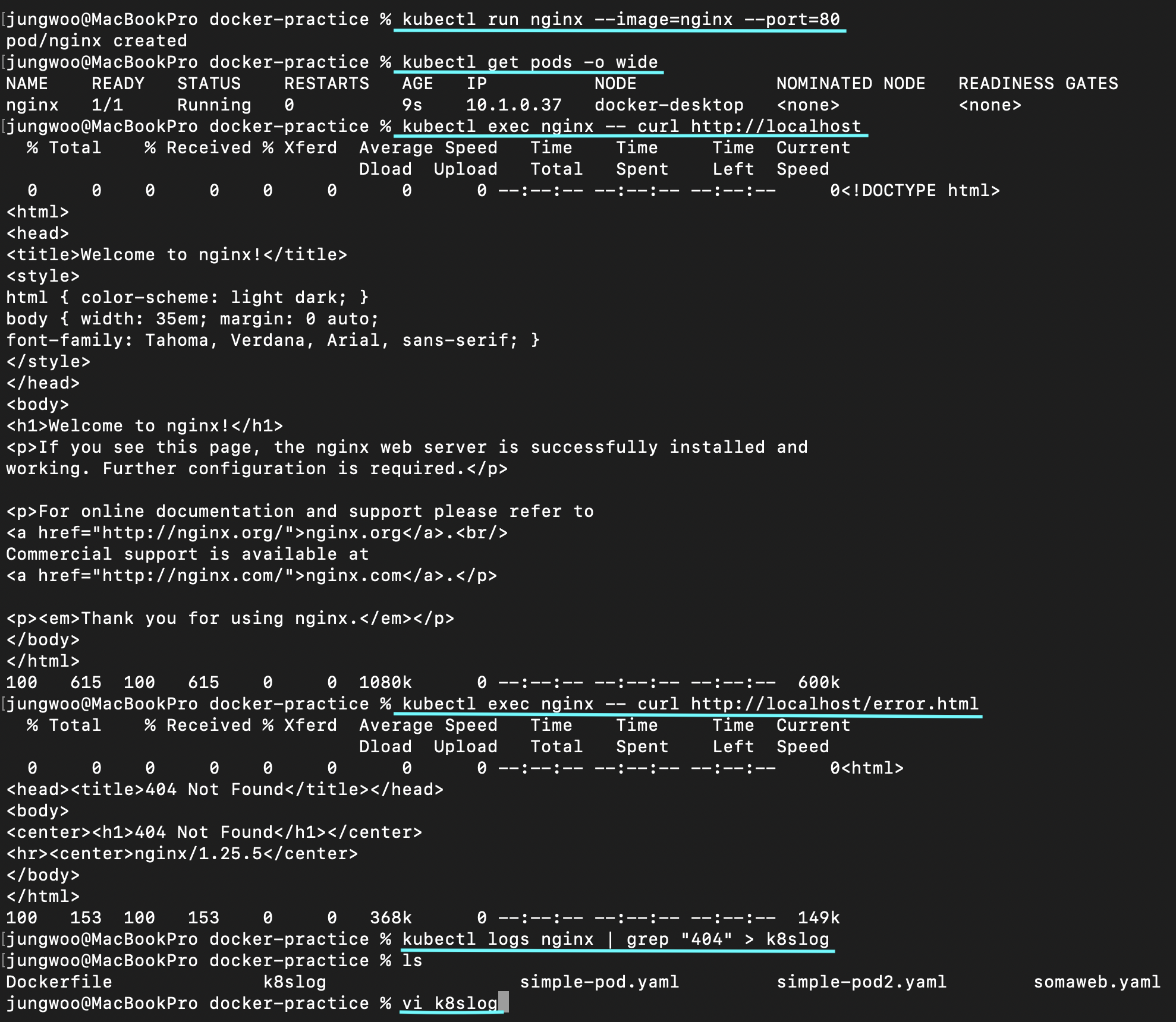 nginx Pod를 구동하고 다음 페이지에 curl로 접속해 봅니다.