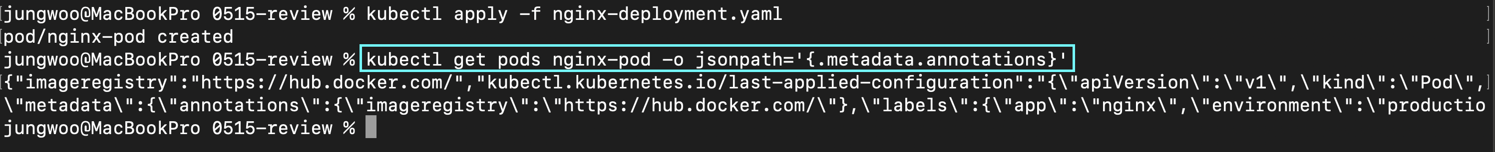 $ kubectl get pods {pod 명} -o jsonpath='{.metadata.annotations}'