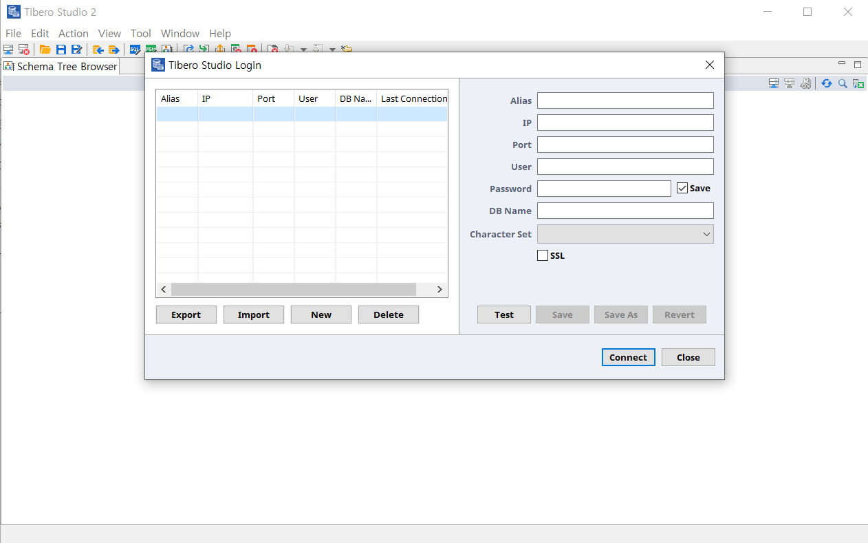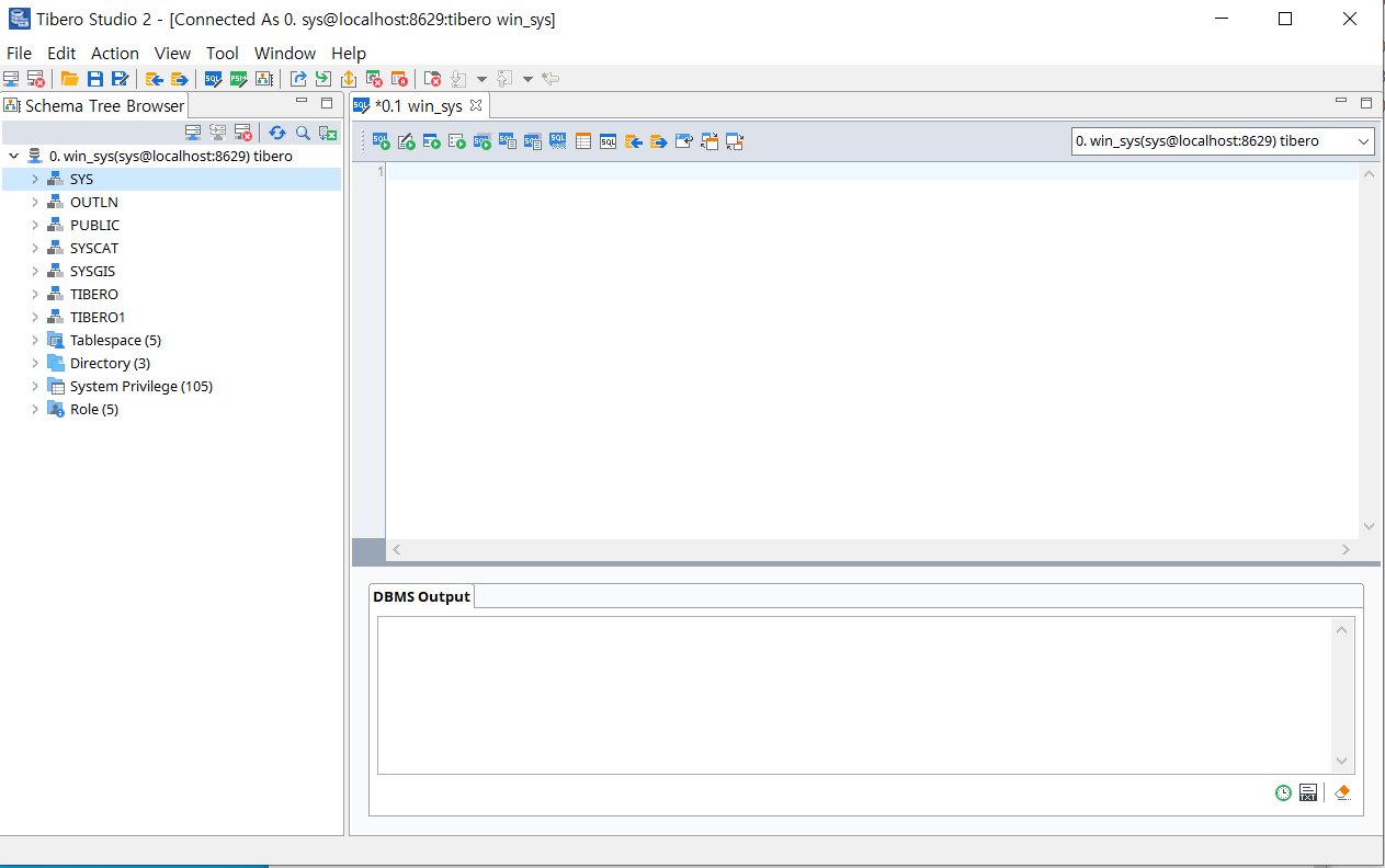 user와 password는 Tibero6를 설치하면서 설정한 sys/tibero로 입력해주었다.