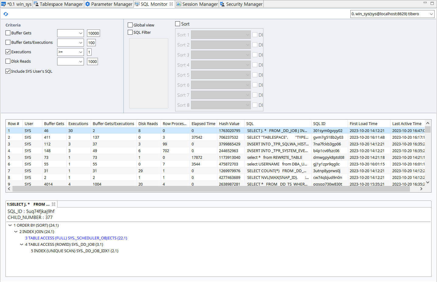 SQL Monitor에서 Tibero 서버의 SQL을 모니터링할 수 있다.
