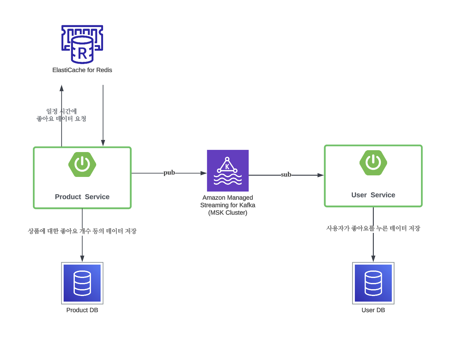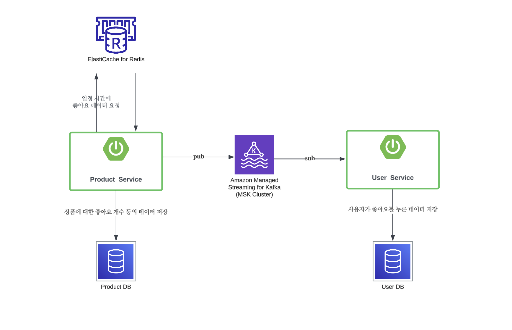 상품 서비스에서 주기적으로 DB에 dump하는 과정에서 추가적으로 유저 서비스의 DB에 저장할 수 있도록 하기 위해 중간에 카프카를 두고 비동기적으로 통신했는데,