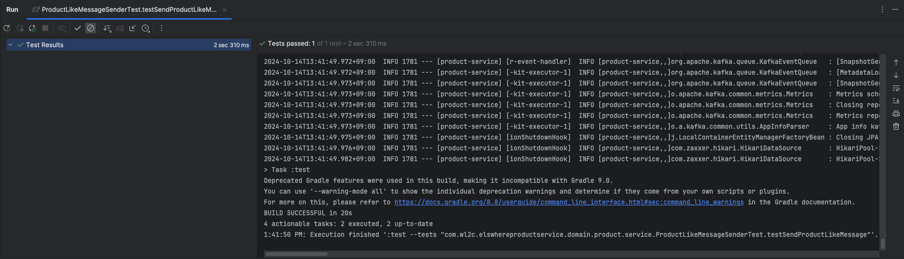 테스트 코드 검증 부분에서는 현재 사용하고 있는 "product-like"라는 토픽에 대해서