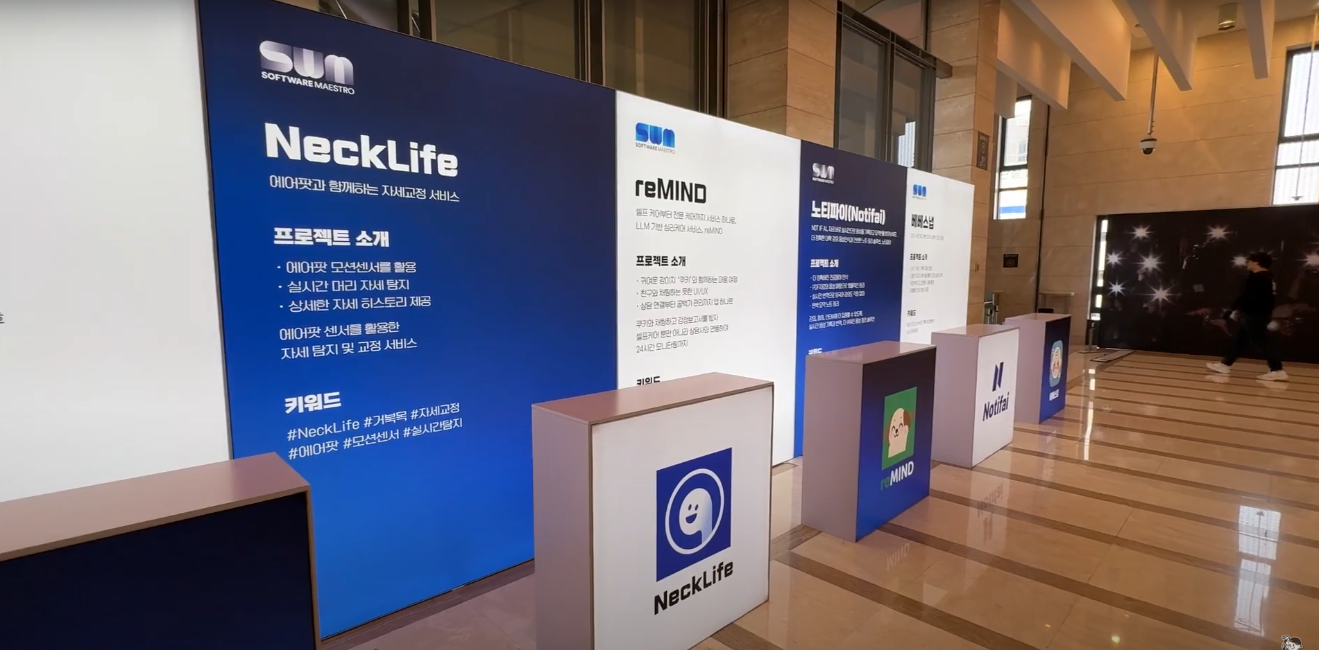 수료식 행사 시작하기 전에, 팀원이랑 행사장 밖에서 프로젝트 구경하고 스탬프 받으면서 전시 부스 돌아다녔었습니다.