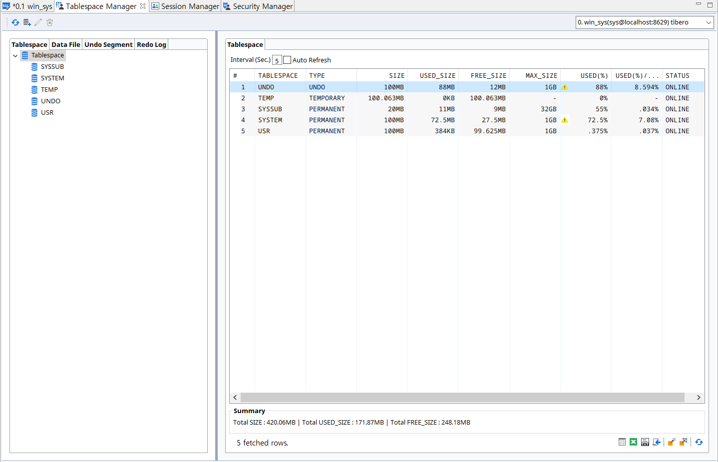 테이블 스페이스의 생성, 수정, 삭제 기능을 사용하여 테이블 스페이스를 관리할 수 있다.