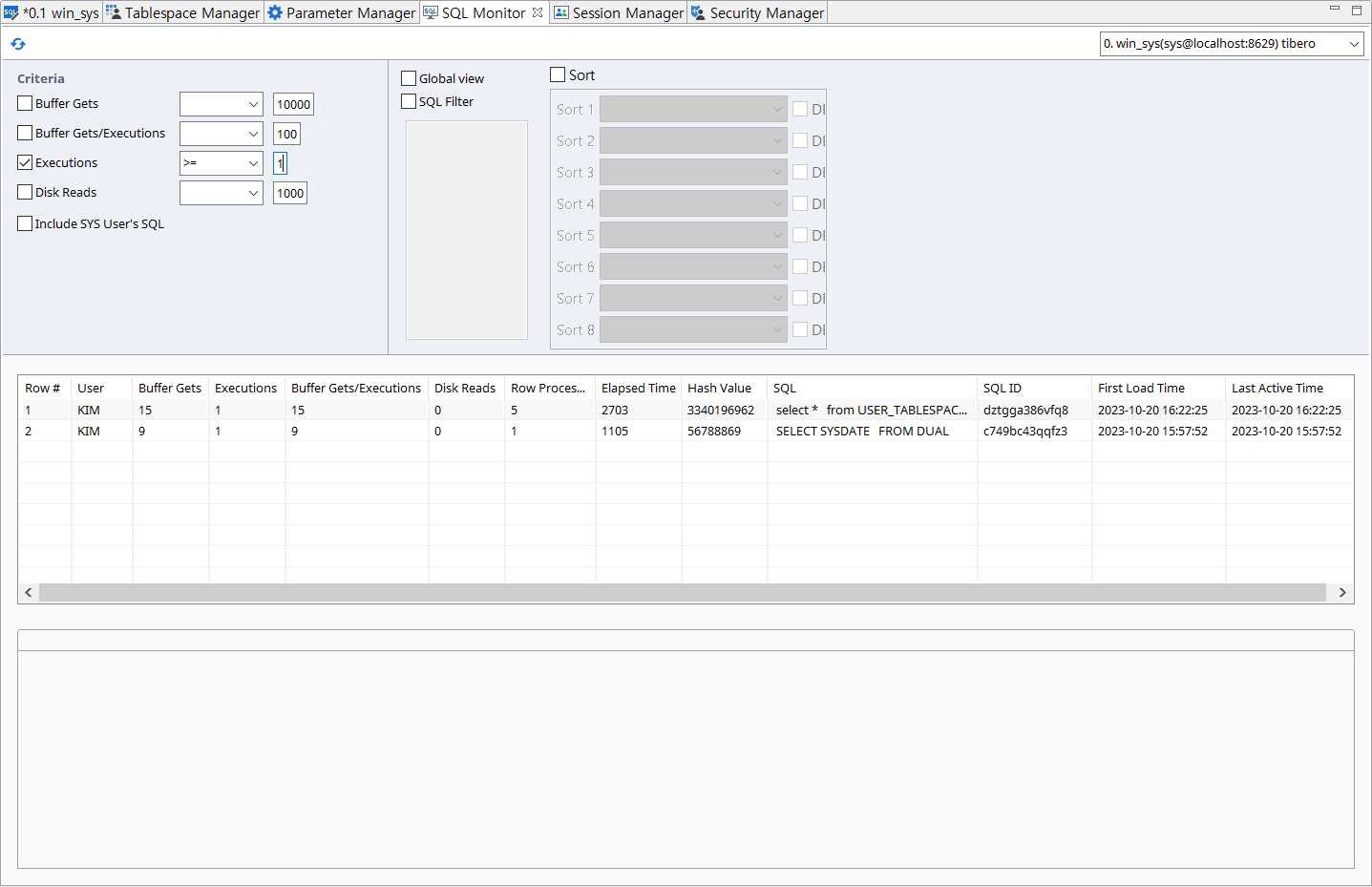 SQL Monitor에서 Tibero 서버의 SQL을 모니터링할 수 있다.
