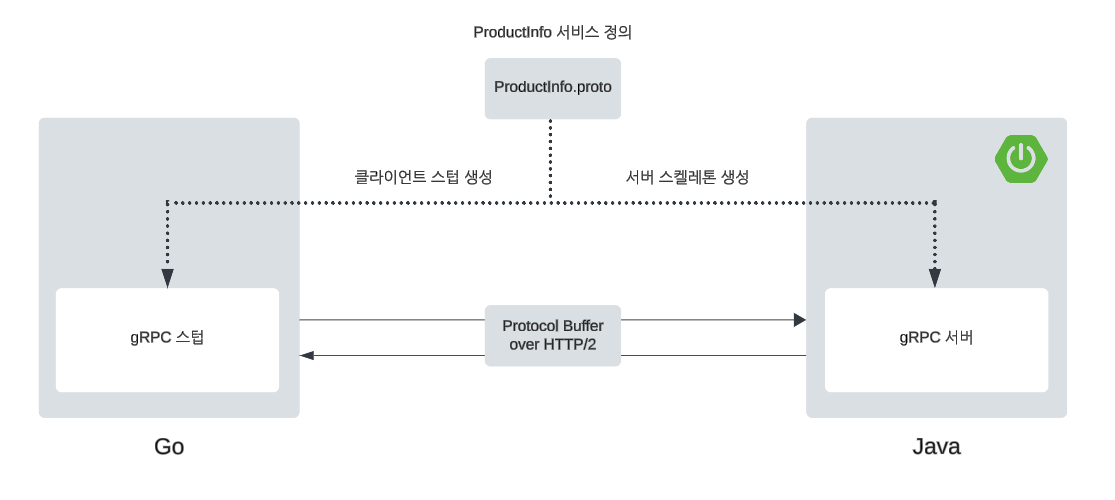 Go 언어를 사용한 이유는 기본적으로 다양한 프로그래밍 언어를 지원하기 때문에 Java로만 gRPC 서버와 클라이언트를 구성하기 보다는 다른 언어로도 통신 과정을 구현해보고 싶었습니다. (사실은 Go 언어와 친해지고 싶었음)