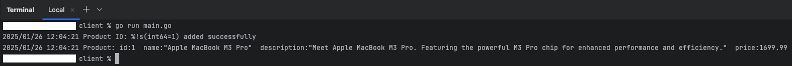 r, err := c.AddProduct(ctx, &productInfo.Product{Name: name, Description: description, Price: price})