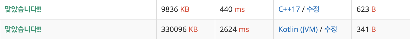 저번에 코틀린으로 코드를 제출했는데 너무 오래 걸려서,